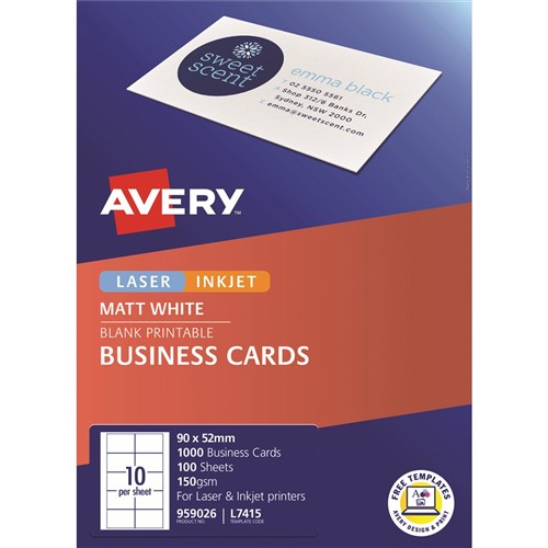 Avery Business Cards Laser & Inkjet Labels White L7415 90x52mm 10UP 1000 Cards
