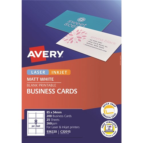 Avery Business Cards Laser Inkjet Double Sided Labels Matte White 8UP 200 Cards
