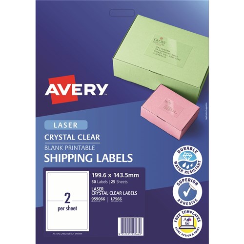Avery Crystal Clear Laser Shipping Labels White L7566 199.6x143.5mm 2UP 50 Labels