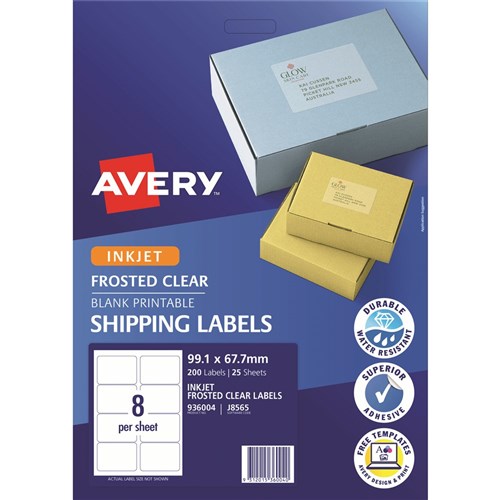 Avery Frosted Clear Inkjet Shipping Labels J8565 99.1x67.7mm 8UP 200 Labels