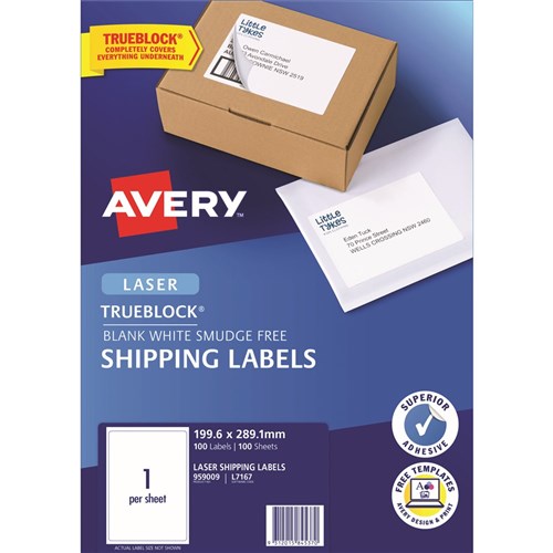 Avery Laser Shipping Labels White L7167 199.6x289.1mm 1UP 100 Labels 100 Sheets