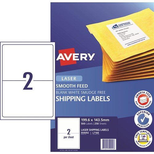 Avery Laser Shipping Labels White L7168 199.6x143.5mm 2UP 500 Labels 250 Sheets