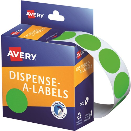 Avery Removable Dispenser Labels 24mm Round Fluoro Green Pack Of 350