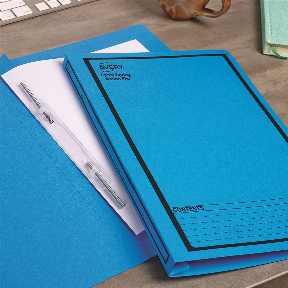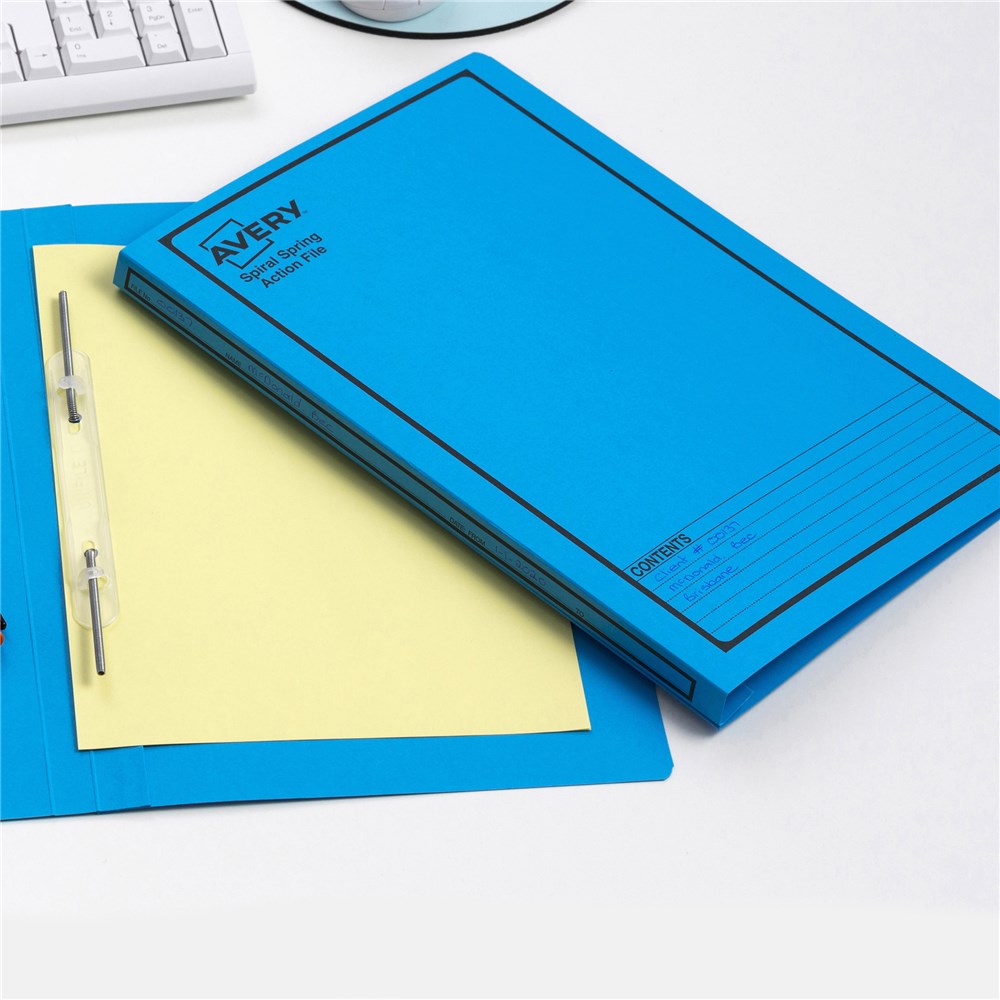 • Heavy weight file fitted with spiral spring coil fastener and pressure plate.
