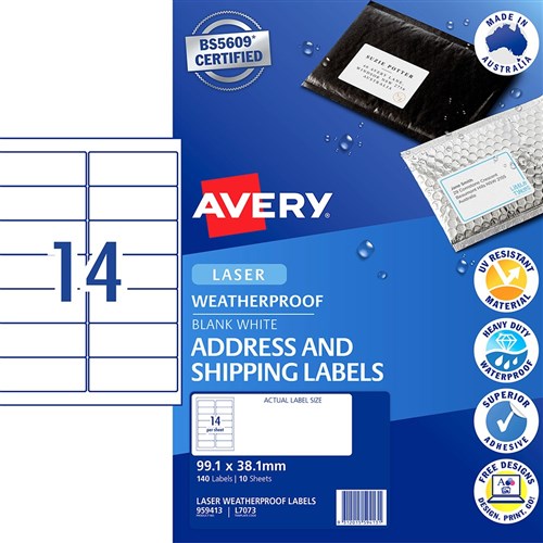 Avery Weatherproof Address & Shipping Laser White L7073 99.1x38.1mm 14UP 140 Labels