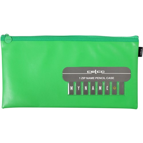 Celco Pencil Case Name Single Zip Medium 338 x 174mm Green