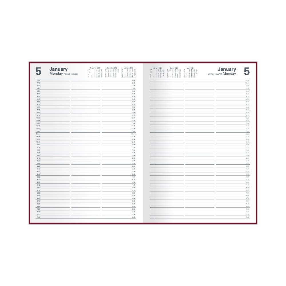 • Bound in a soft-look burgundy cover, section sewn for extra strength and with times printed clearly down each page.