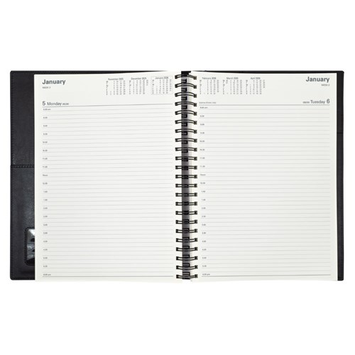 • Ideal for those 'on the move' with its double wiro binding and heavily grained metallic and matt PU cover.