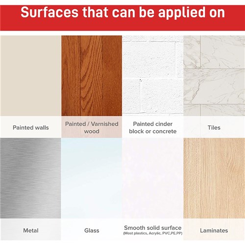 • Works on a variety of indoor surfaces, such as painted Gyprock, finished wood, tile, metal and glass
