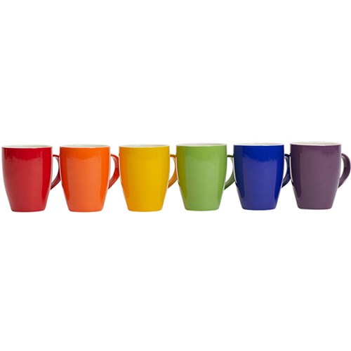 • Attractive stylish set of 6 mugs in a range of designer polished colours purple, red, orange, blue, yellow and green.