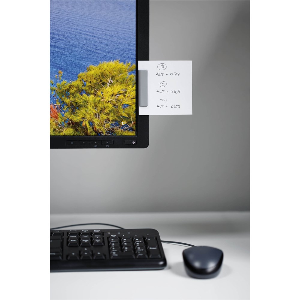 • Self-adhesive attachment on smooth, attachable surfaces such as cabinets, fridges, glass doors or showcases.