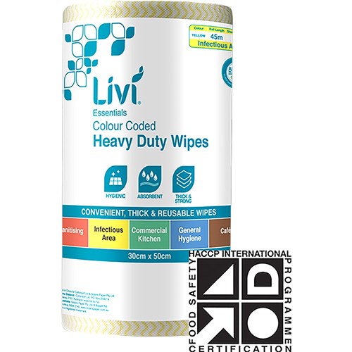 • HACCP certified, each non woven wipe is 70 grams per square metre making them thick and strong for extra absorbent results.