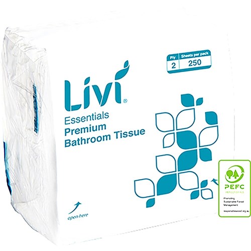 Livi Essentials Premium Toilet Tissue Interleaved 2 Ply 250 Sheets Box Of 36