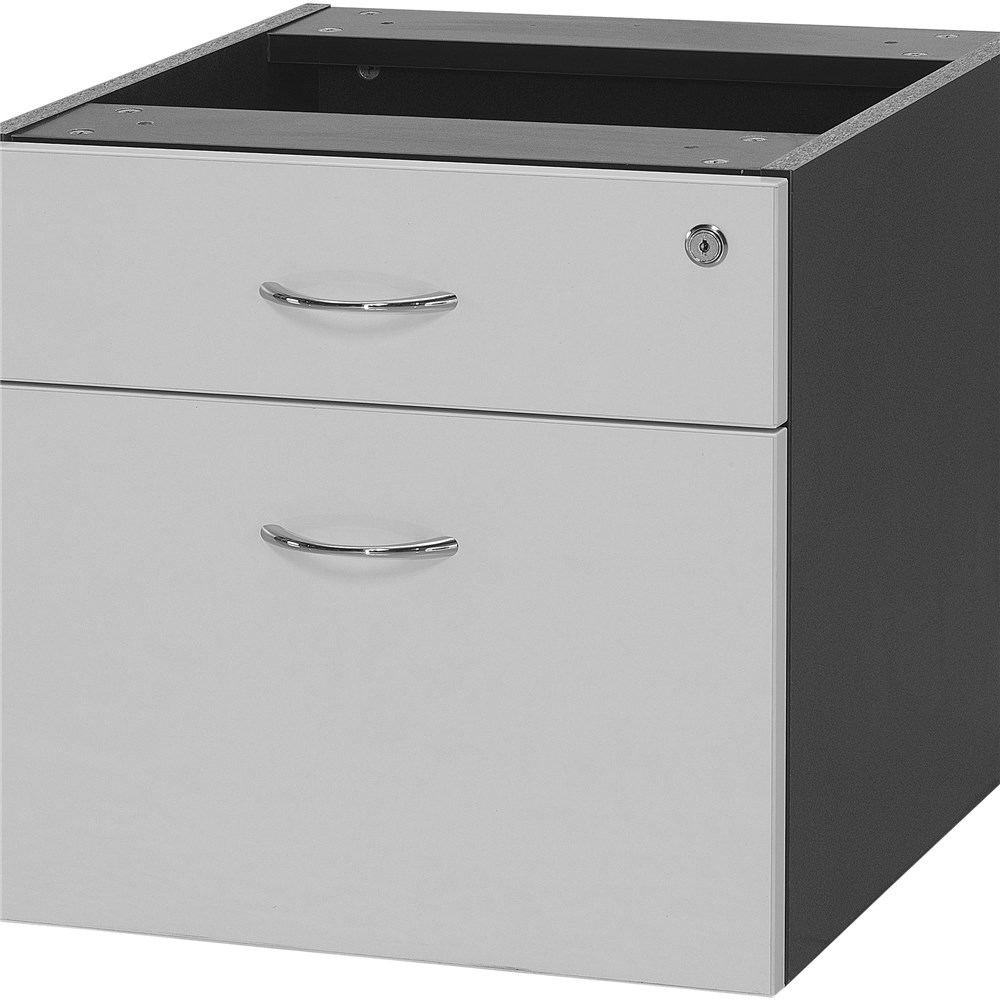 Logan Fixed Pedestal 1 Drawer 1 File 476W x 470D x 450mmH White And Ironstone