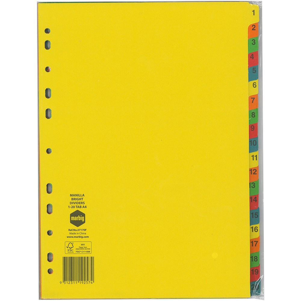 Marbig Manilla Indices & Dividers A4 1-20 Tab Bright Colours