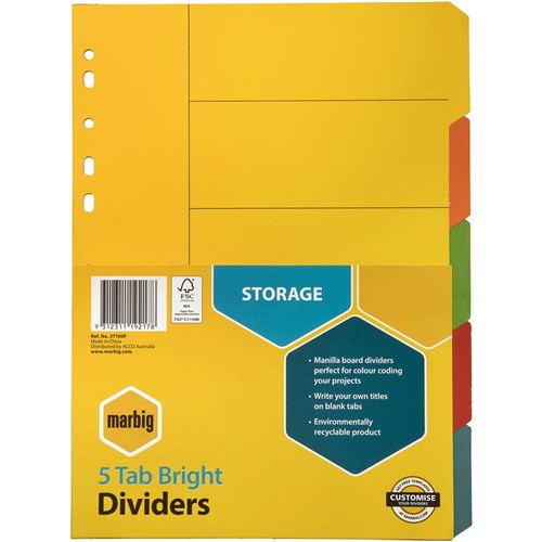 Marbig Manilla Indices & Dividers A4 5 Tab Bright Colours