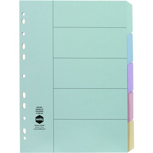 Marbig Manilla Indices & Dividers A4 5 Tab Pastel Colours