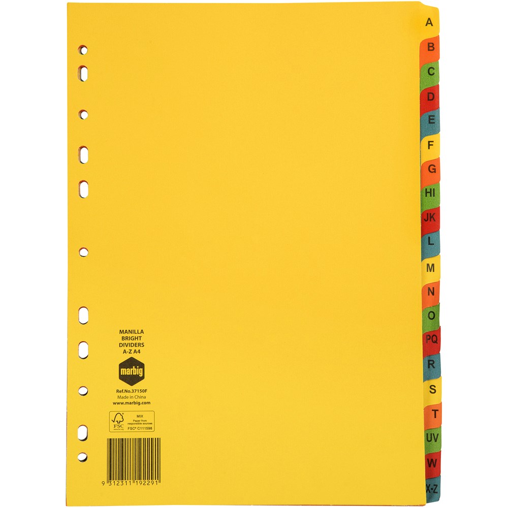 Marbig Manilla Indices & Dividers A4 A-Z Tab Bright Colours