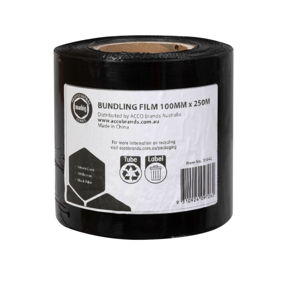 Marbig Professional Bundling Film Blown 100mm x 250m 2-Inch Core Black