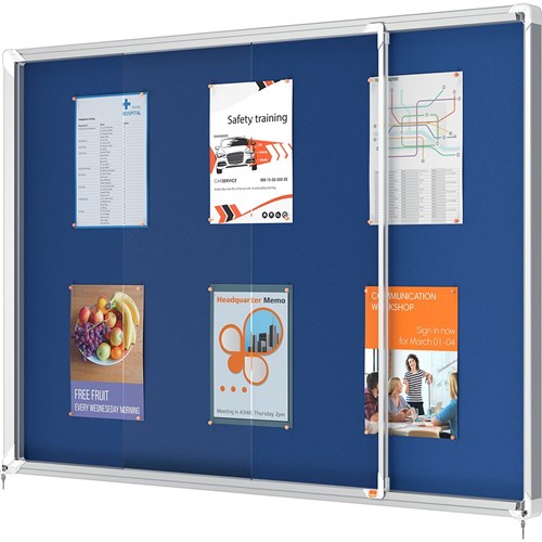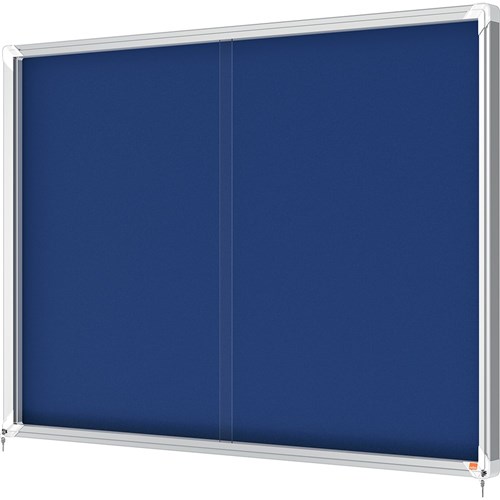 Nobo Enclosed Notice Board 1355 x 970mm Blue Fabric