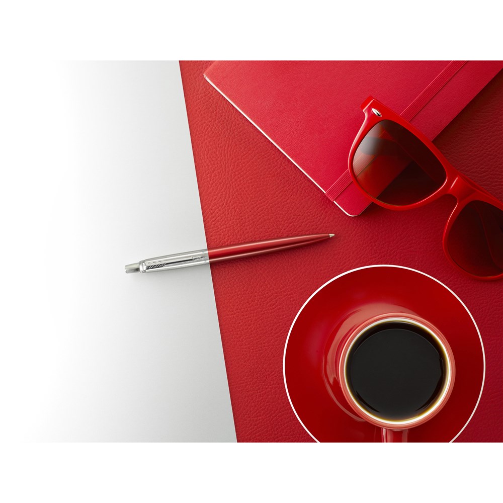 Parker Jotter Ballpoint Pen Kensington Red Chrome Trim Blue Refill