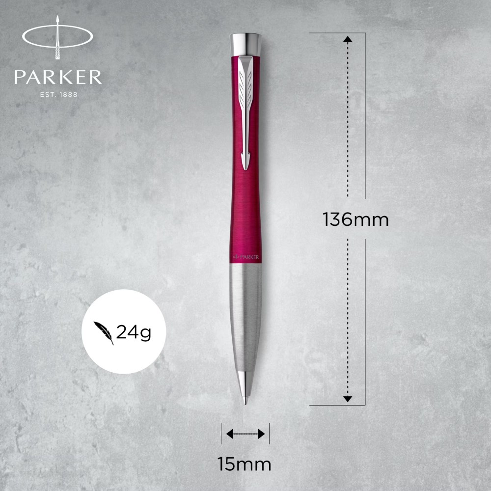 Parker Urban Twist Ballpoint Pen Vibrant Magenta Chrome Trim Blue Refill
