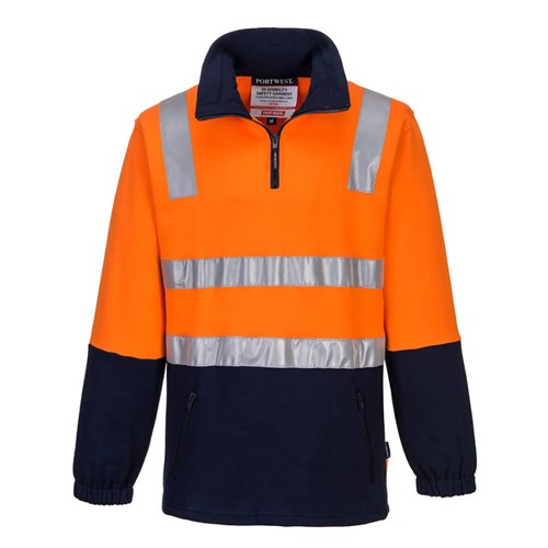 Portwest Hi-Vis Contrast 1/4 Zip Brush Fleece Jumper With Tape 3XL Orange And Navy