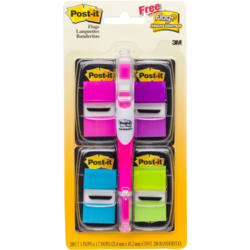 Post-It 680-PPBGVA Flags Value Pack 25x43mm Bright Colours + Highlighter Pack of 200