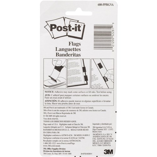 • 680-PPBGVA contains: 4x standard flags, plus FREE yellow highlighter. 25x44mm, 50 flags x 4 colours (200 flags total).