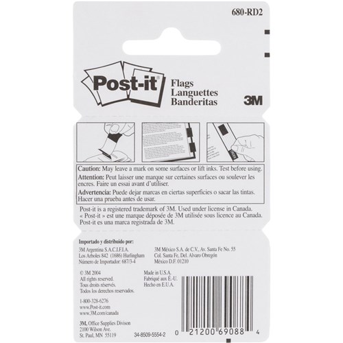Post-It 680-RD2 Flags Twin Pack 25x43mm Red Pack of 2