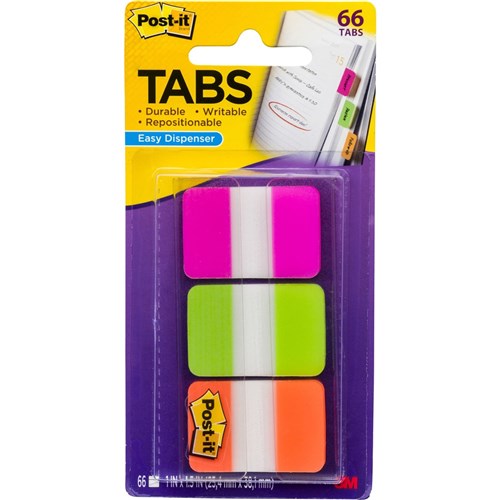 Post-It 686-PGOB Durable Tabs 25x38mm Pink Green Orange Pack of 66