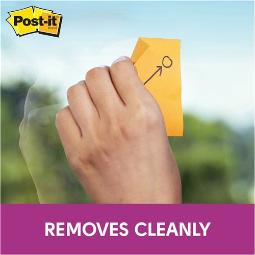 • Super Sticky Post-it® adhesive ensures that notes stick practically anywhere such as computer monitors, filing cabinets & furniture, and remain as easily removable as original Post-it® Notes.