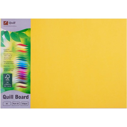 Quill Board A3 210gsm Lemon Pack of 25
