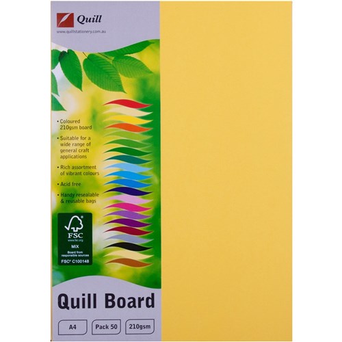 Quill Board A4 210gsm Lemon Pack of 50