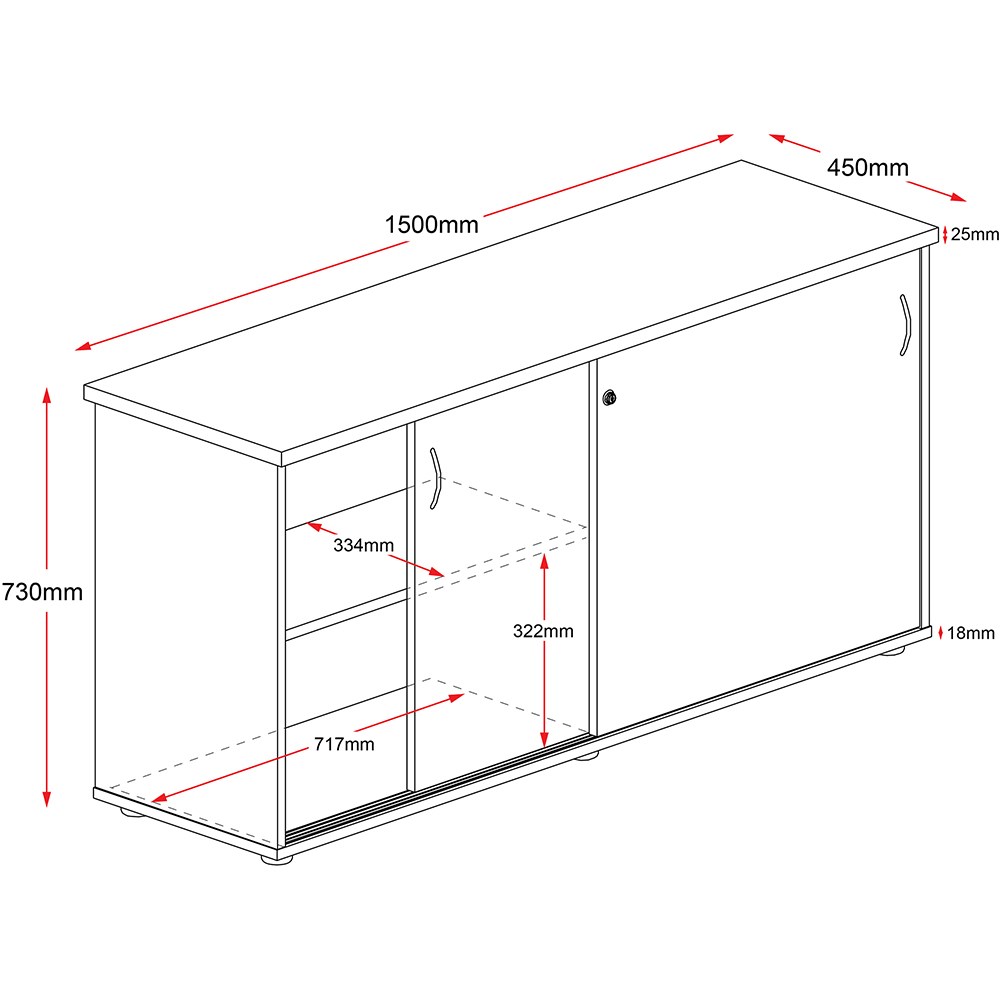 Rapidline Credenza Sliding Doors 1500W x 450D x 730mmH Oak And Ironstone