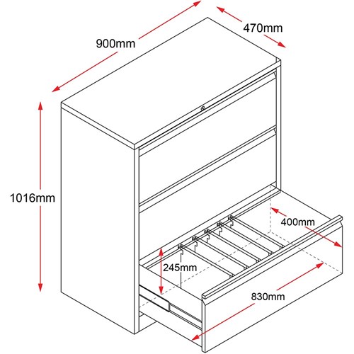 • Rapidline Go Lateral Filing Cabinet 3 Drawer 900W x 473D x 1016mmH Black