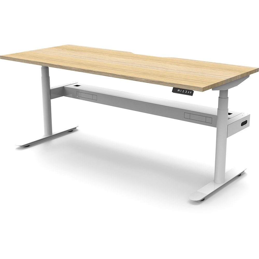• 70mm diameter round column legs. 700mm wide foot size with adjustable leveling feet, return foot: 700mm. Comes with cable tray for cable management.