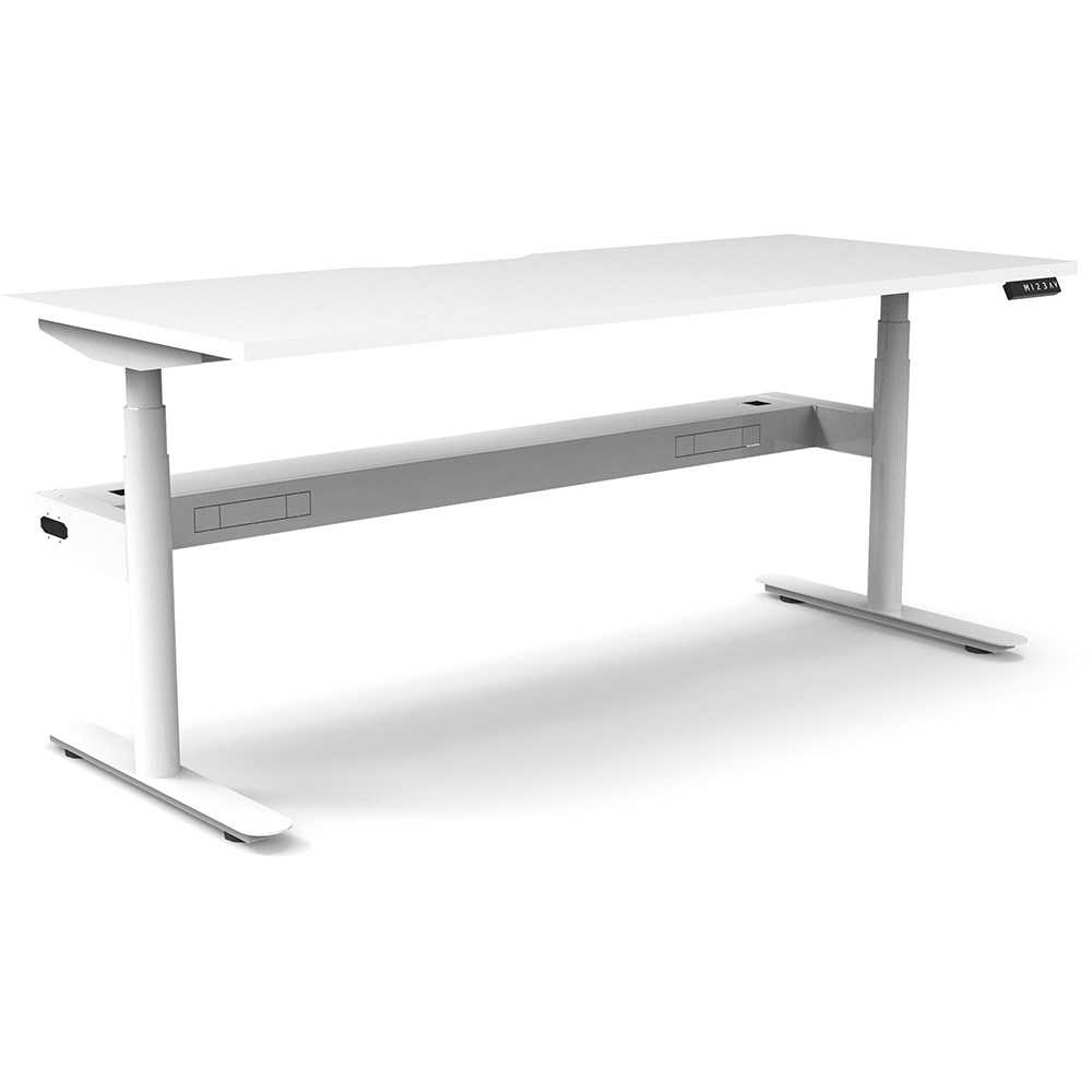 • 70mm diameter round column legs. 700mm wide foot size with adjustable leveling feet, return foot: 700mm. Comes with cable tray for cable management.