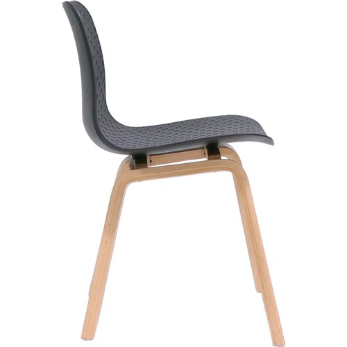 Rapidline Lucid Breakout Room Chair Light Oak Timber Leg Black Patterned Poly Shell