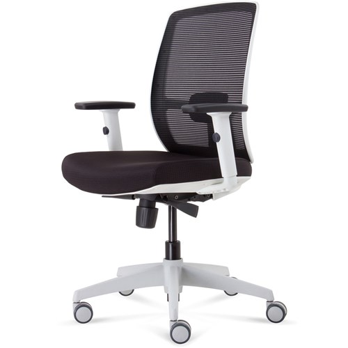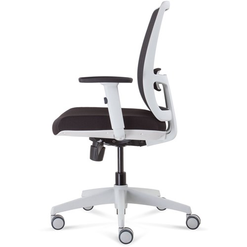 • Gas lift, seat slide and lumbar support. White 5 star base on castors.