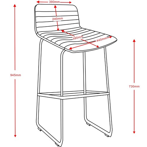 • Seat Width: 440mm. Seat Depth: 390mm. Seat Height: 730mm. Back Height: 240mm. Back Width: 440mm - 390mm.