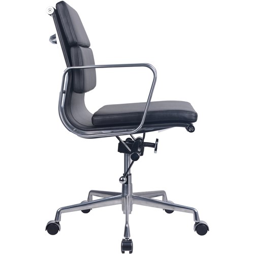 Rapidline PU900M Executive Chair Chrome Base And Arms Medium Back Black Padded PU