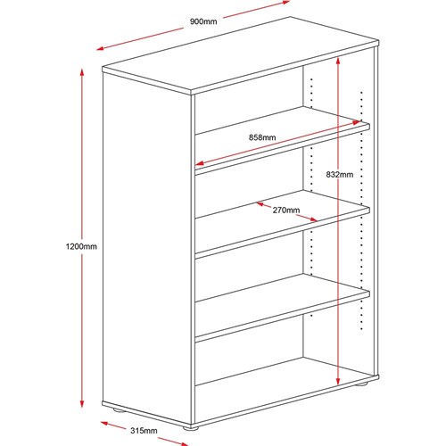 Rapidline Rapid Worker Bookcase 3 Shelves 900W x 315D x 1200mmH White And Ironstone