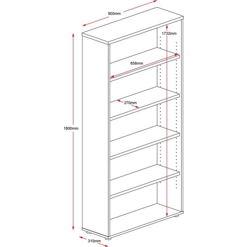 Rapidline Rapid Worker Bookcase 4 Shelves 900W x 315D x 1800mmH White And Ironstone