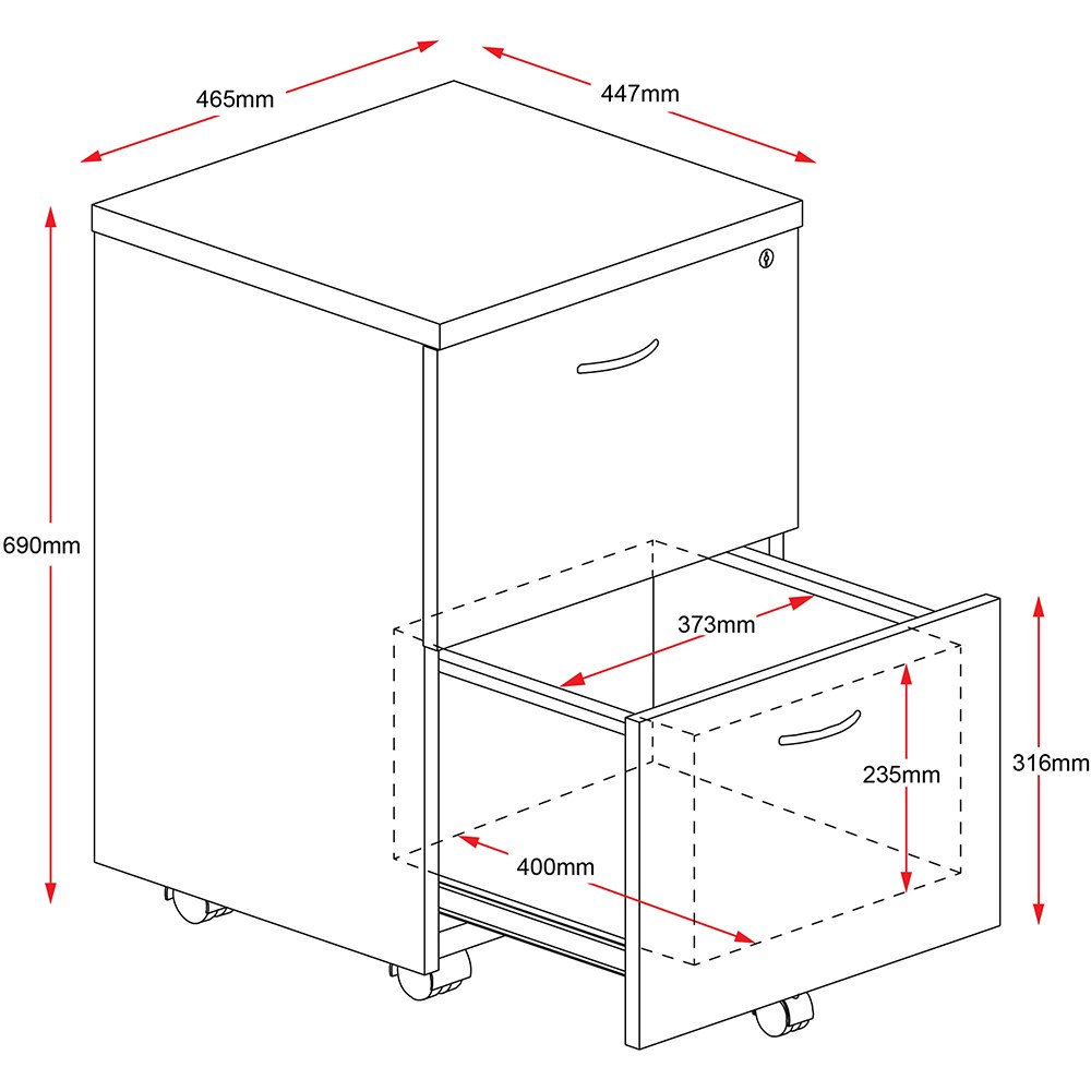 Rapidline Rapid Worker Mobile Pedestal 2 File Drawer 465W x 447D x 690mmH Ironstone
