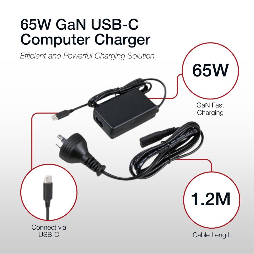 Shintaro 65W GaN 16 USB-C Notebook Charger Black