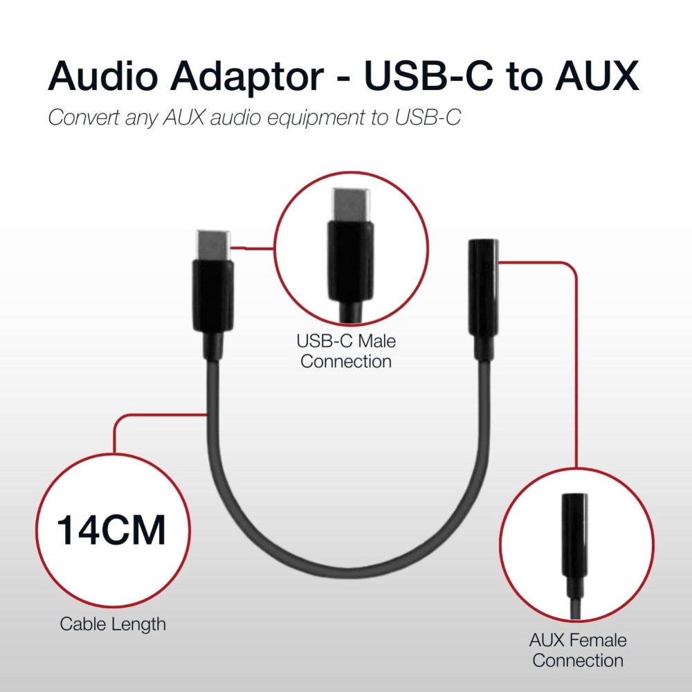 • USB Type C to AUX Female Wired Headphone Jack w/32-bit DAC.