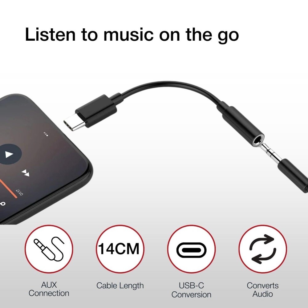 Shintaro Headphone Jack USB-C To AUX 3.5mm Adaptor Black
