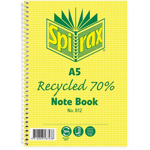 Spirax 812 Recycled 100% Notebook A5 Ruled 120 Pages Side Opening