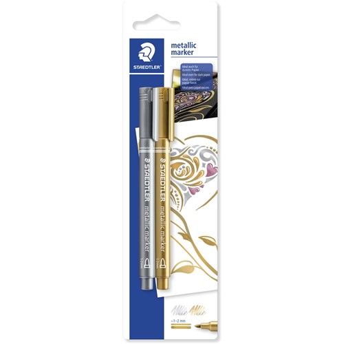 Staedtler 8323 Metallic Marker Bullet 1-2mm Silver & Gold Pack of 2
